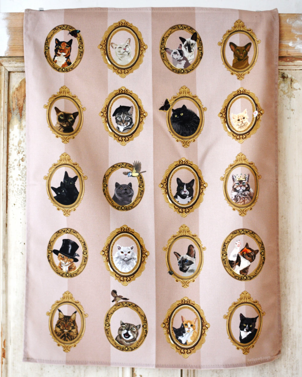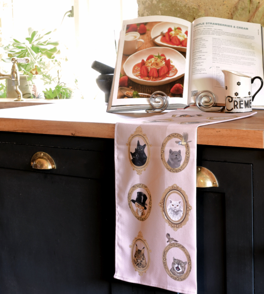 This tea towel shows off our beloved cats in a style befitting the kitchen of Versailles no less! You will find many of our favourite cat breeds together with an abundance of expressive detail and a fair bit of wildlife too. A classic design with a lot of charm that is purrfect for all kitchens. Each tea towel features 23 cat breeds from the standard issue tabby cat to the royal Burmese, is made from high quality cotton, comes with a hanging loop and measures approx. 67 x 42cm.